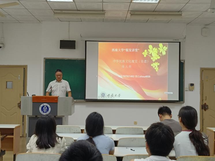 6月6日,学校关工委副秘书长、“西大红”五老服务团引航服务部部长周大明做客“银发讲堂”,以“中华民族文化瑰宝(非遗)”为主题,为青年学子带来一场穿越时空的文化盛宴。周大明教授以深厚的学术底蕴引领青年学子深入探索中华非物质文化遗产的博大精深,从新疆的麦西热甫到蒙古族的呼麦,从侗族大歌到藏族的唐卡,从国粹京剧到地方戏曲越剧、黄梅戏,再到民间技艺抖空竹,全面而细致地阐释了这些非物质文化遗产项目的历史渊...