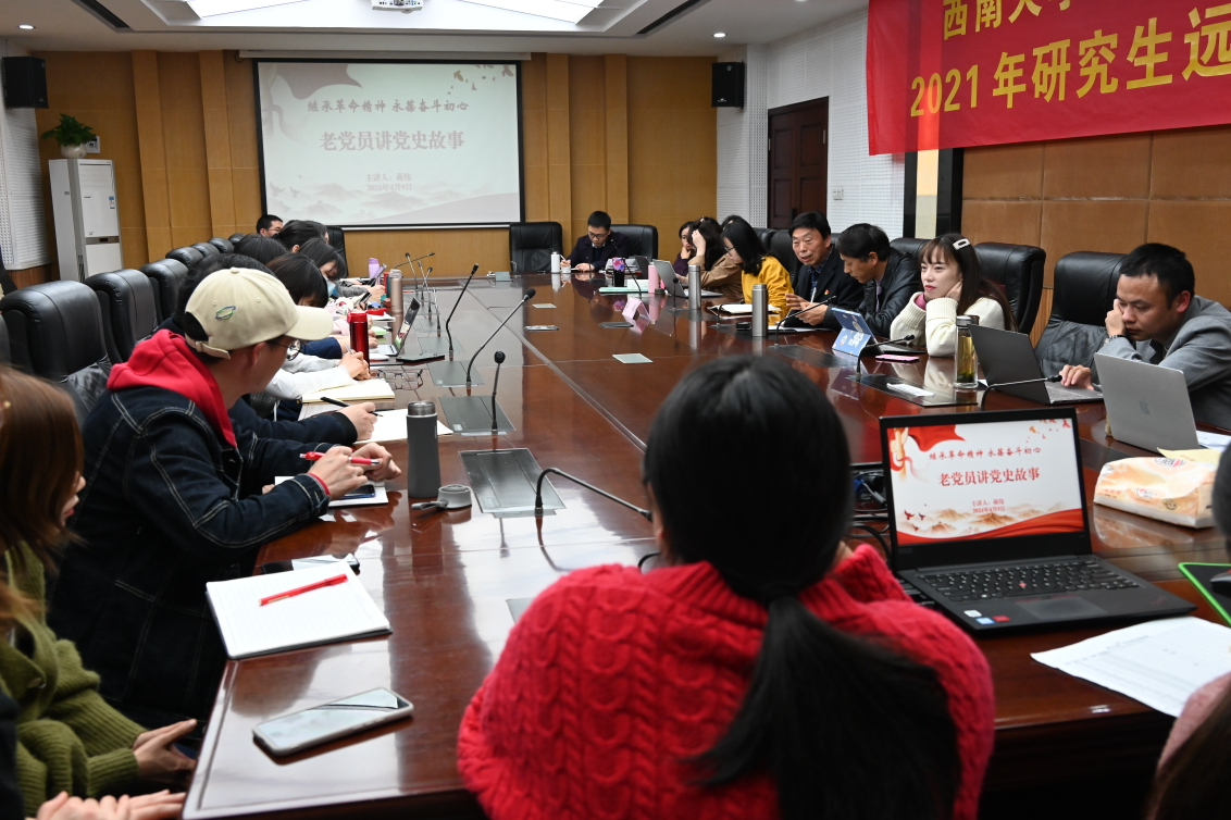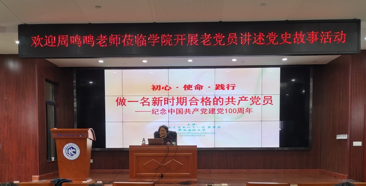 此外,许子清、向雪琴、林元吉、郭昌瑜同志也分别赴文学院、外国语学院、蚕桑纺织与生物质科学学院、历史文化学院讲述了党史故事。