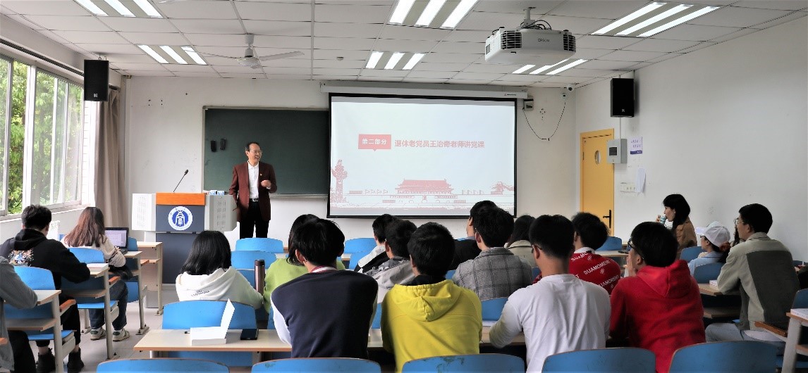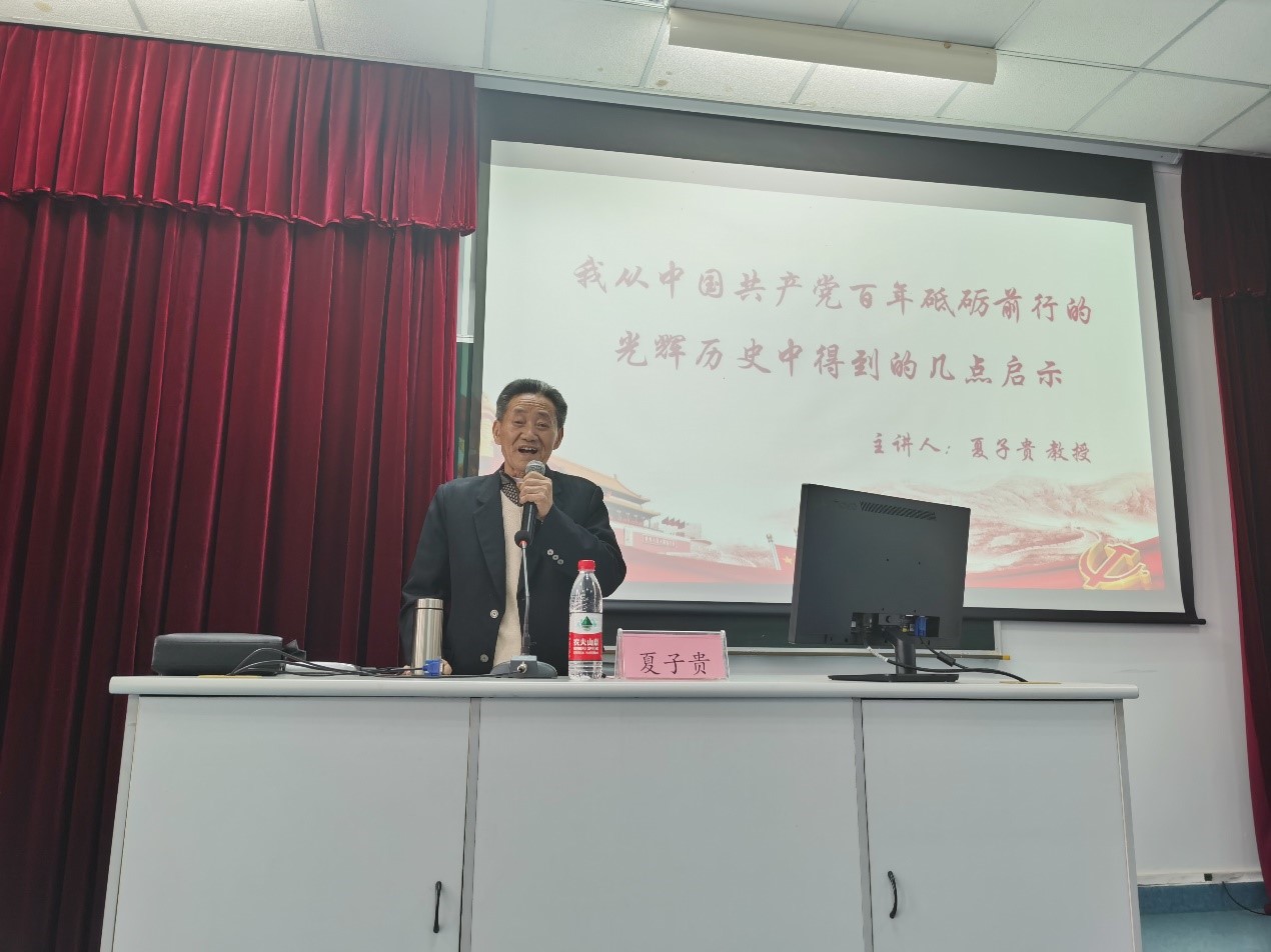 夏子贵同志为国家治理学院师生作了“我从中国共产党百年砥砺前行的光辉历史中得到的几点启示”专题讲座,结合自身经历,从国家治理学院的历史溯源出发,讲述党的发展历史,引导青年党员追寻党的初心印记。