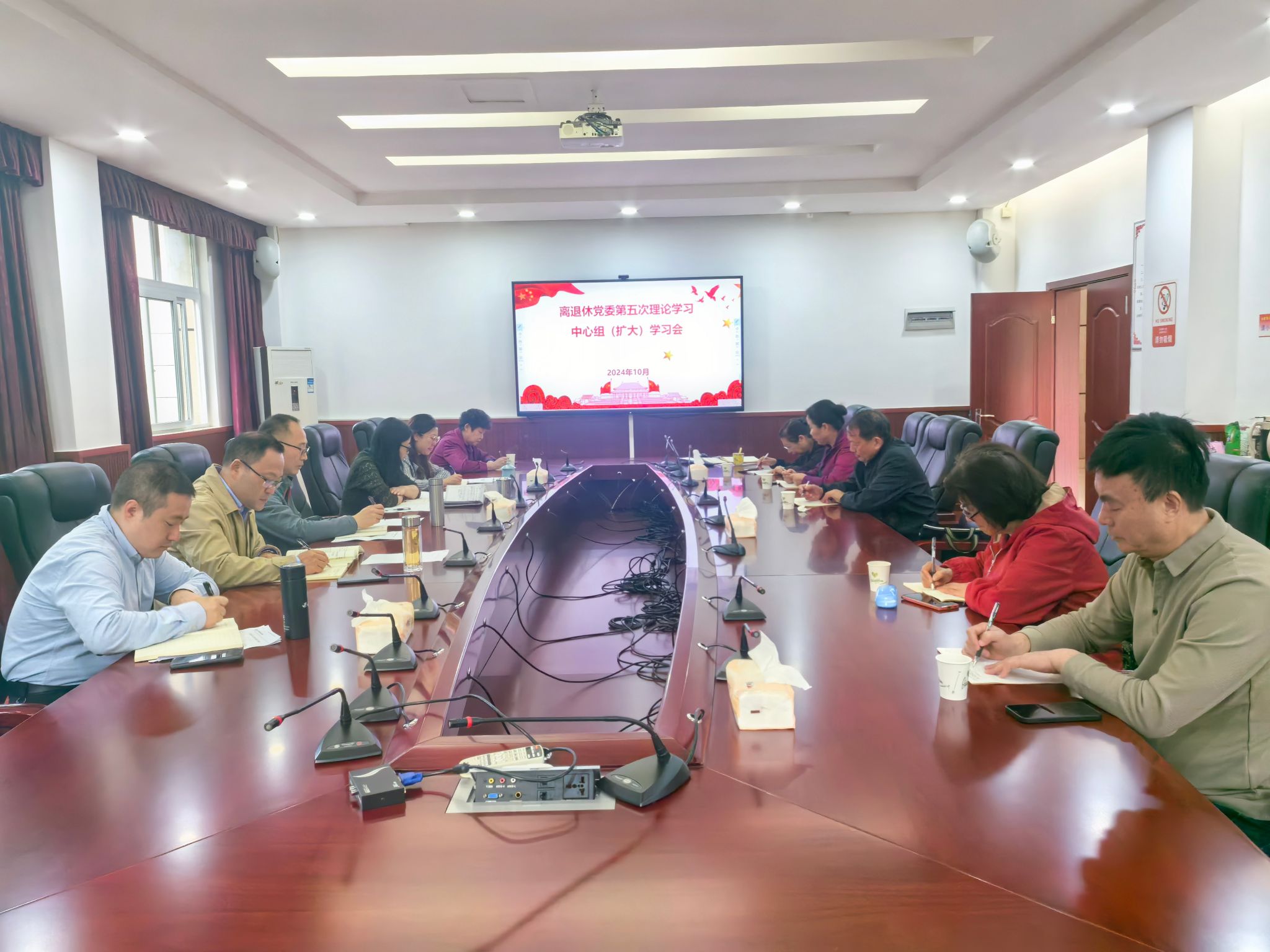 10月29日上午,离退休党委在北区教职工活动中心307会议室举行了2024年第五次党委理论学习中心组(扩大)学习会,处级领导、党委委员参加学习。会议由离退休党委书记李红主持。