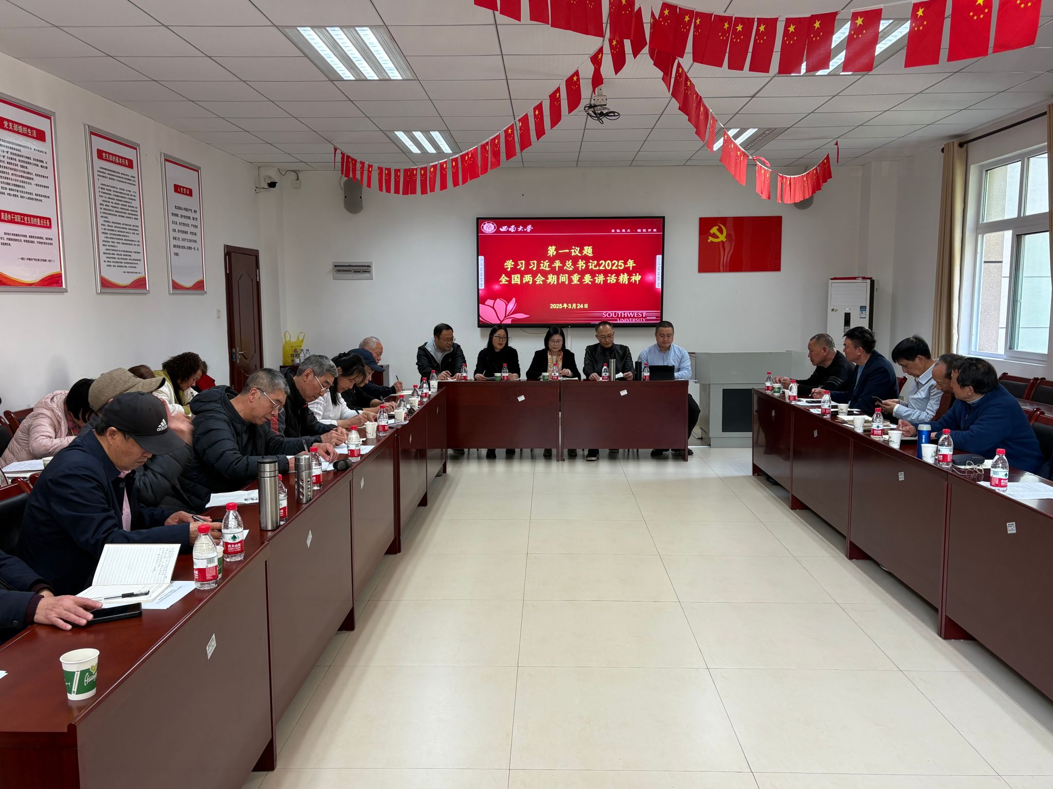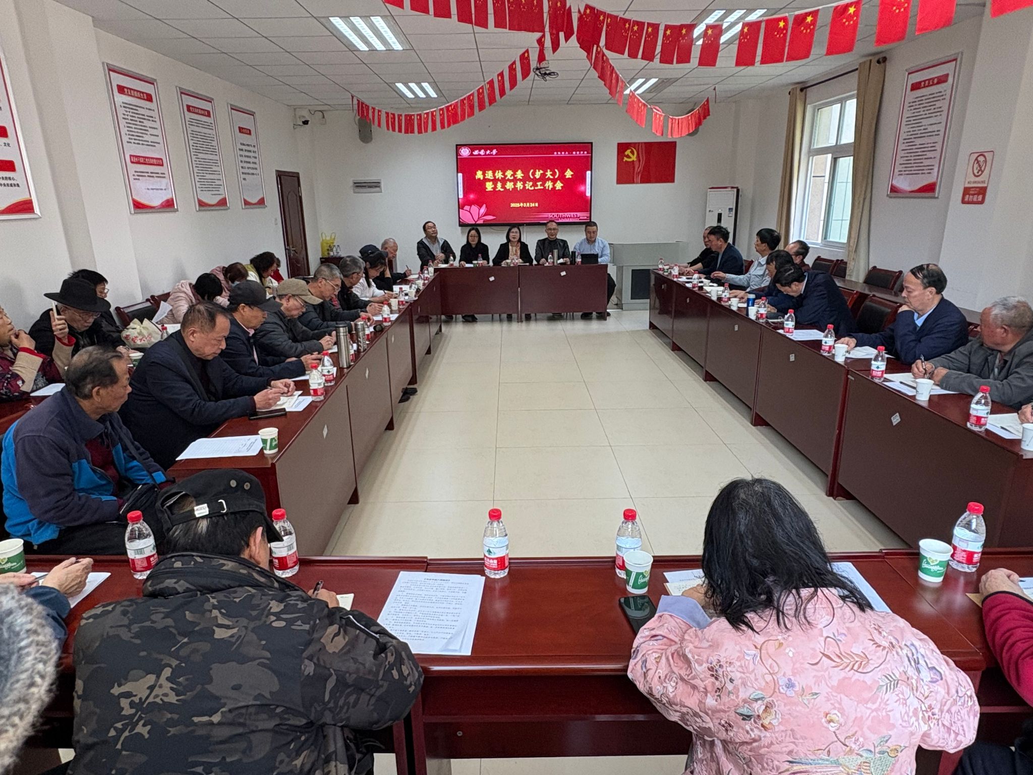 3月24日下午,离退休党委在桃花山离退休教职工活动中心201会议室召开离退休党委(扩大)会暨支部书记工作会。离退休党委委员、纪委委员、支部书记参加会议,离退休党委书记余小蓉主持会议。