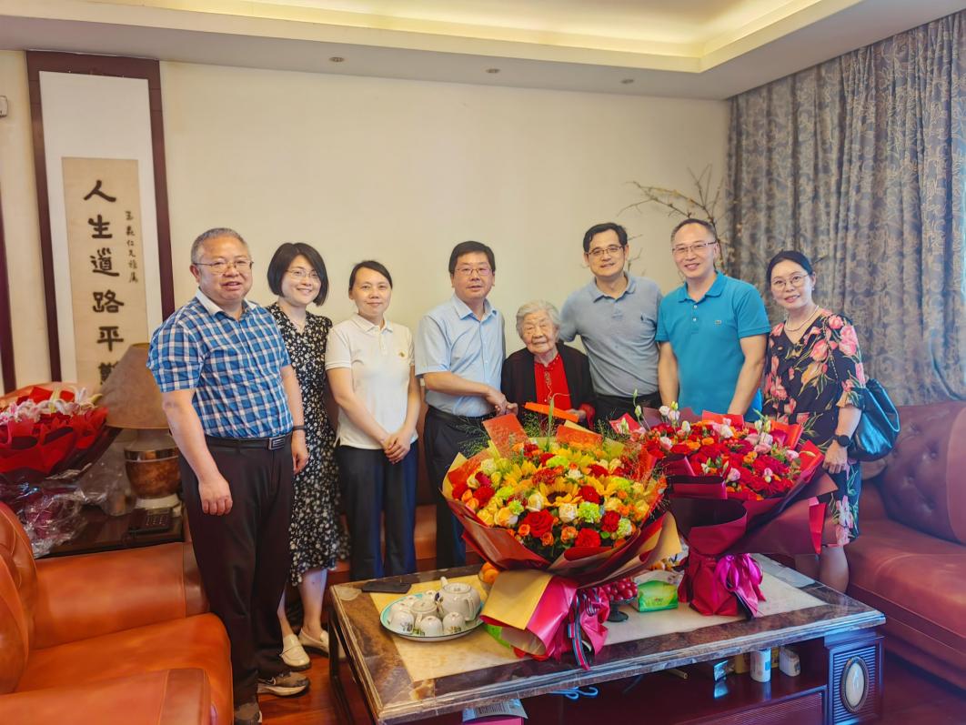 在涂老师家中,邹芙都代表学校送上鲜花和慰问金,详细询问老人健康和生活情况,看到涂老师思维敏捷,口齿清晰,精神矍铄,由衷地为她感到高兴和欣慰。他夸赞老人家身体好、精神好,感谢她为学校事业发展做出的贡献,叮嘱家属要悉心照顾好老人生活,让老人安享晚年。
