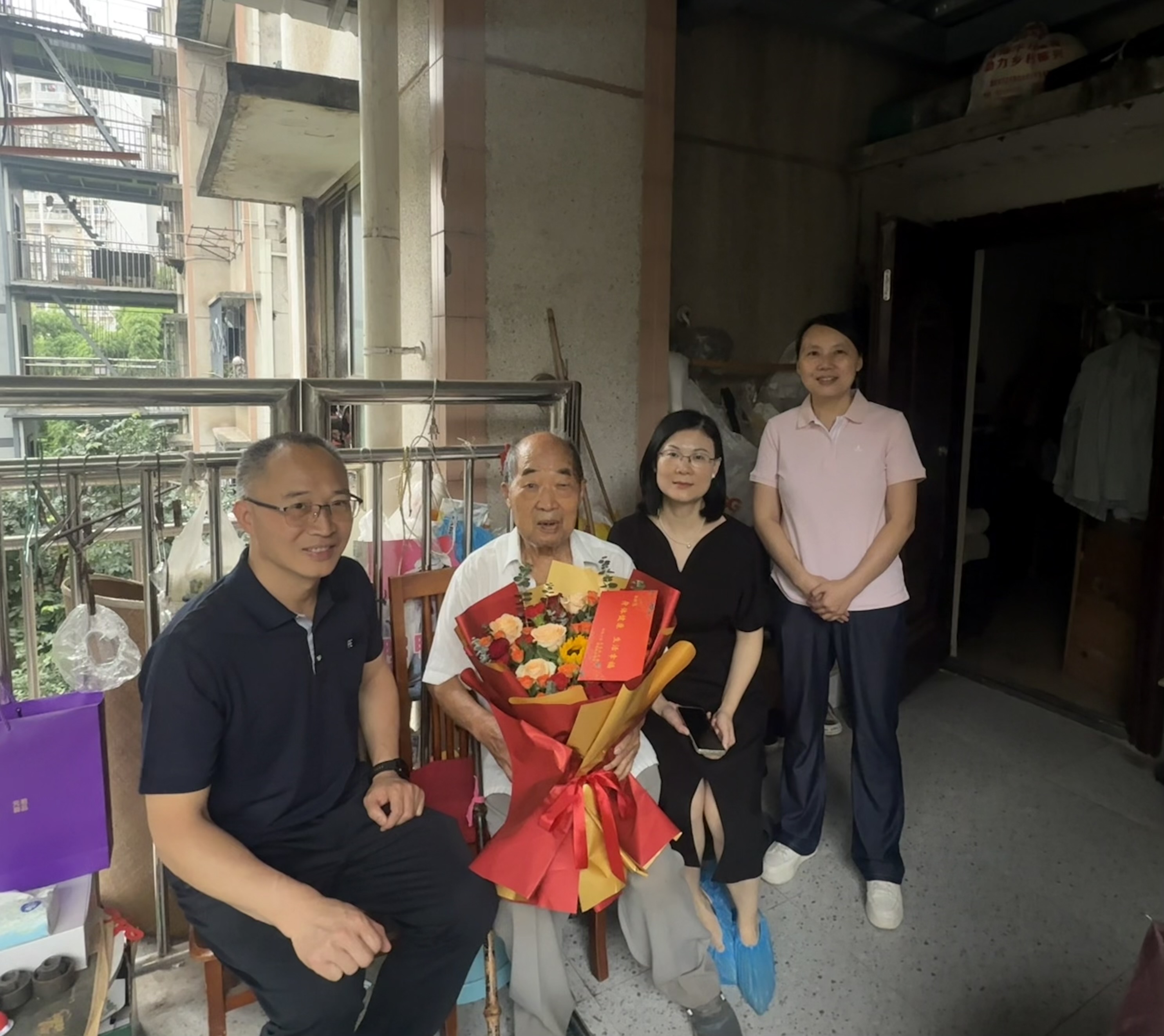 为纪念中国人民抗日战争暨世界反法西斯战争胜利80周年,致敬抗战老兵、弘扬抗战精神,离退休党委、离退休工作处开展“七一”走访慰问抗战离休干部、抗战老兵活动。离退休党委书记余小蓉、离退休工作处处长鲁森、副处长冉秦鸿等一行看望慰问了刘俊峰、常德胜、曹寿贵三位抗战老战士,向他们致以最崇高的敬意与最诚挚的问候!