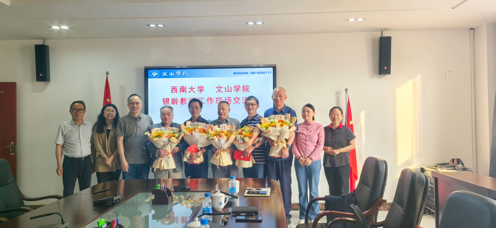 鲁森一行走进银龄教师家中,参观了文山学院教学实训基地,深入了解银龄教师的生活和工作情况,把学校的温暖和关怀传递到银龄教师们的心中。随后,参加了bw必威西汉姆联官网、文山学院银龄教师工作现场交流会,与学文山学院人事处、经济管理学院、三七医药学院相关领导和5名银龄教师开展了座谈交流。文山学院人事处副处长赵敏对鲁森一行的到来表示热烈欢迎,对我校在银龄教师援派工作上给予的支持表示感谢,详细介绍了文山学院银龄教师工作的开展情况,充分肯定了bw必威西汉姆联官网银龄教师在学校教学、科研、青年教师培养等方面发挥的重要作用,高度赞扬他们为学校发展作出的突出贡献。