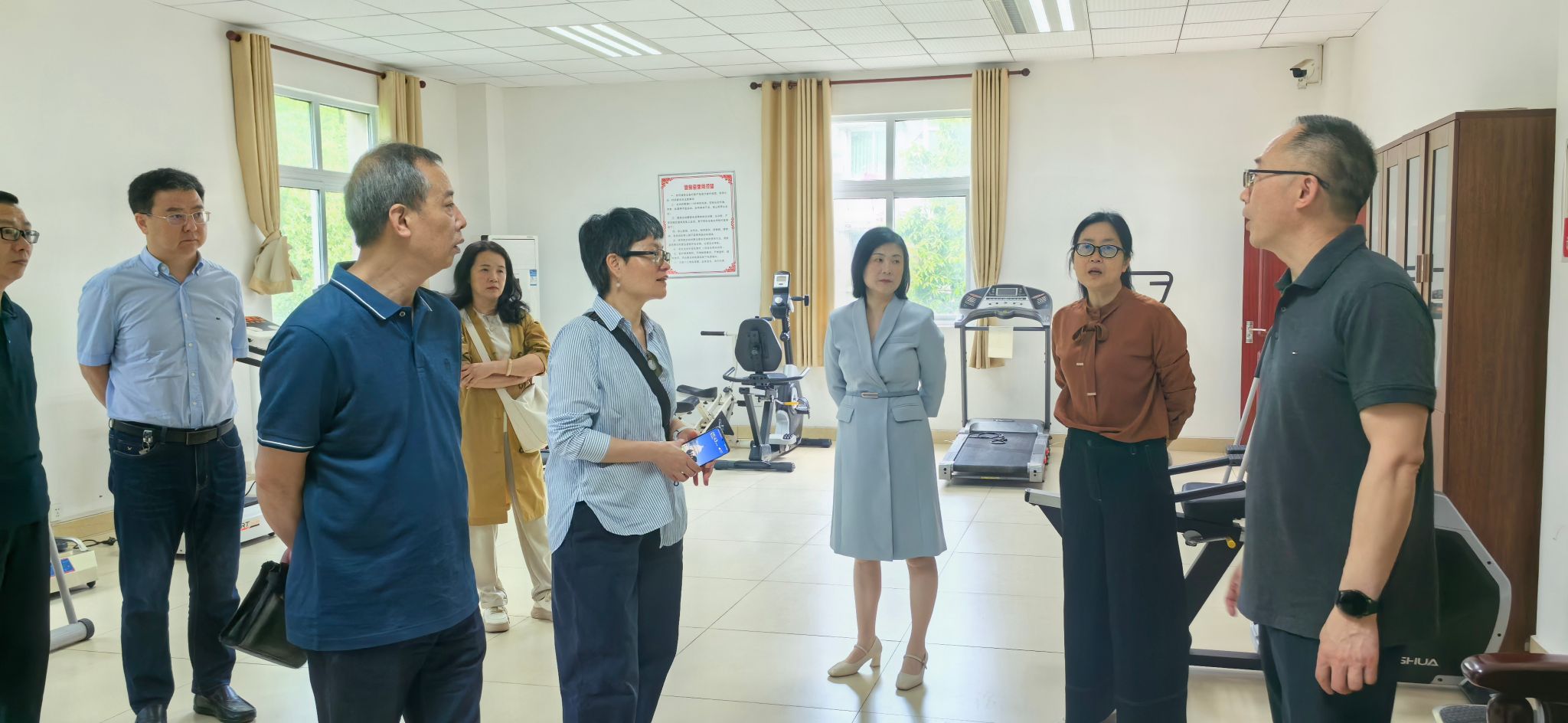 座谈会前,李永海一行参观了学校桃花山离退休教职工活动中心,详细了解了活动中心的功能布局和使用情况。