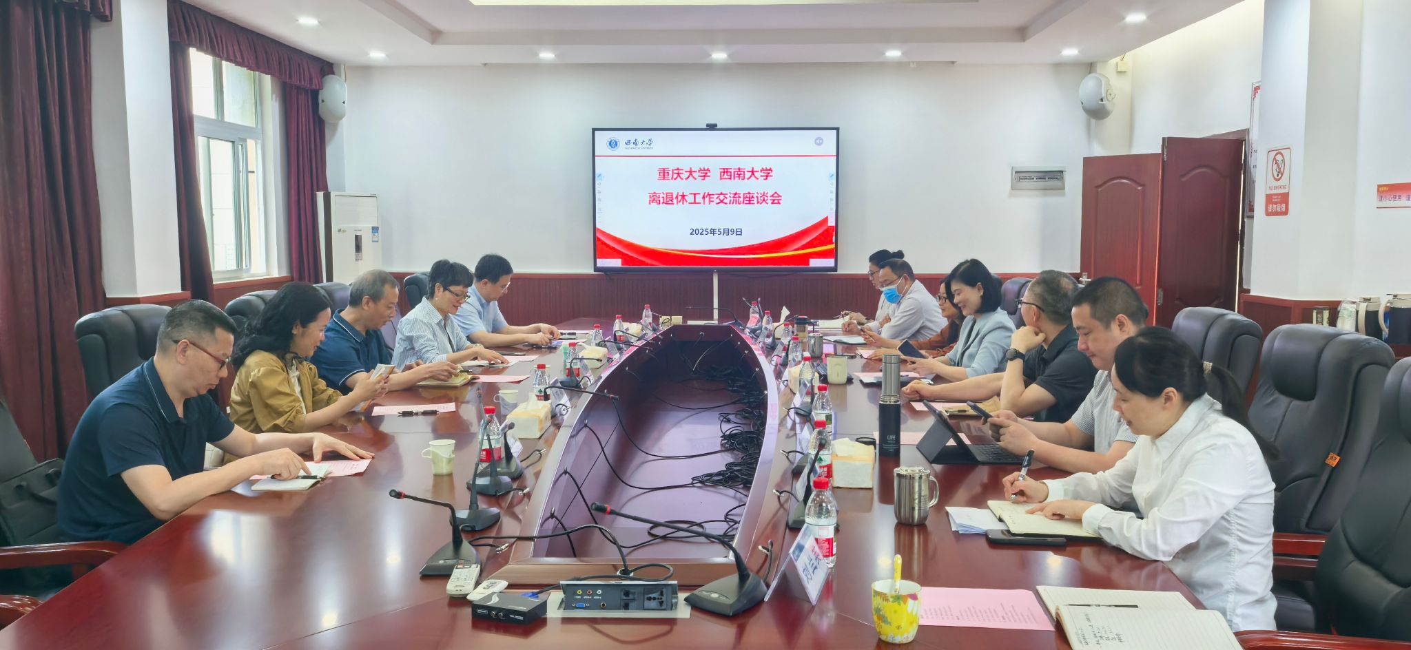 5月9日,重庆大学离退休党委书记李永海、离退休工作处处长王宇红一行来校调研交流。学校离退休党委书记余小蓉、离退休工作处处长鲁森、正处级组织员李红等相关人员参加座谈交流。会议由余小蓉主持。