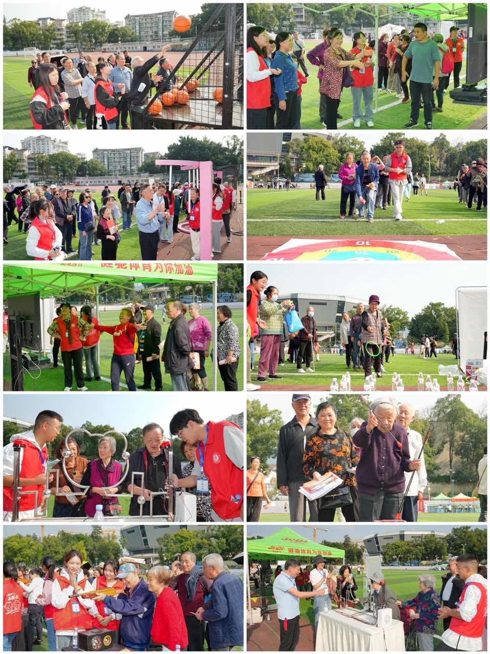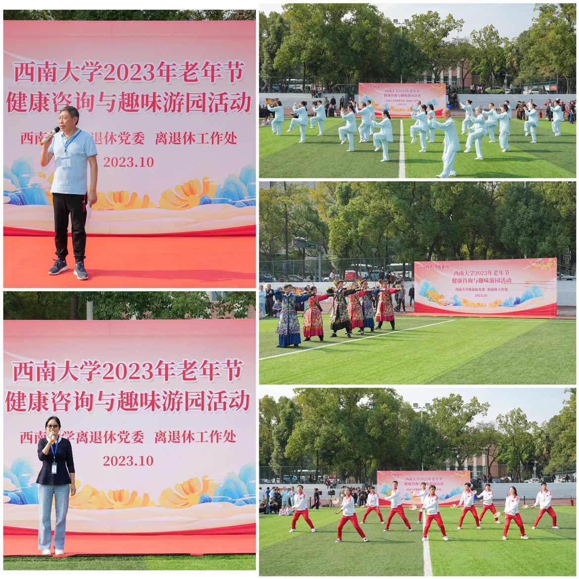 九九重阳展风姿,岁岁金秋桑榆情。为欢庆2023年老年节,丰富我校离退休教职工精神文化生活,离退休党委、离退休工作处策划组织了“心心相伴 情暖重阳”敬老月系列活动。10月22日下午,“老年健康咨询与趣味游园”活动在学校第三运动场举行,1000多名离退休老同志参加活动。