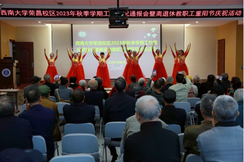 10月20日上午,bw必威西汉姆联官网荣昌校区2023年秋季学期工作情况通报会暨离退休教职工庆祝重阳节活动在7B101报告厅举行,副处级组织员包尔泉同志出席会议并向参会的离退休老同志通报学校、校区近期有关工作推进情况,离退休党委及办公室全体职工以及100余名离退休老同志参加了会议。会议由荣昌校区离退休党委书记、离退休工作办公室主任唐胜云主持。