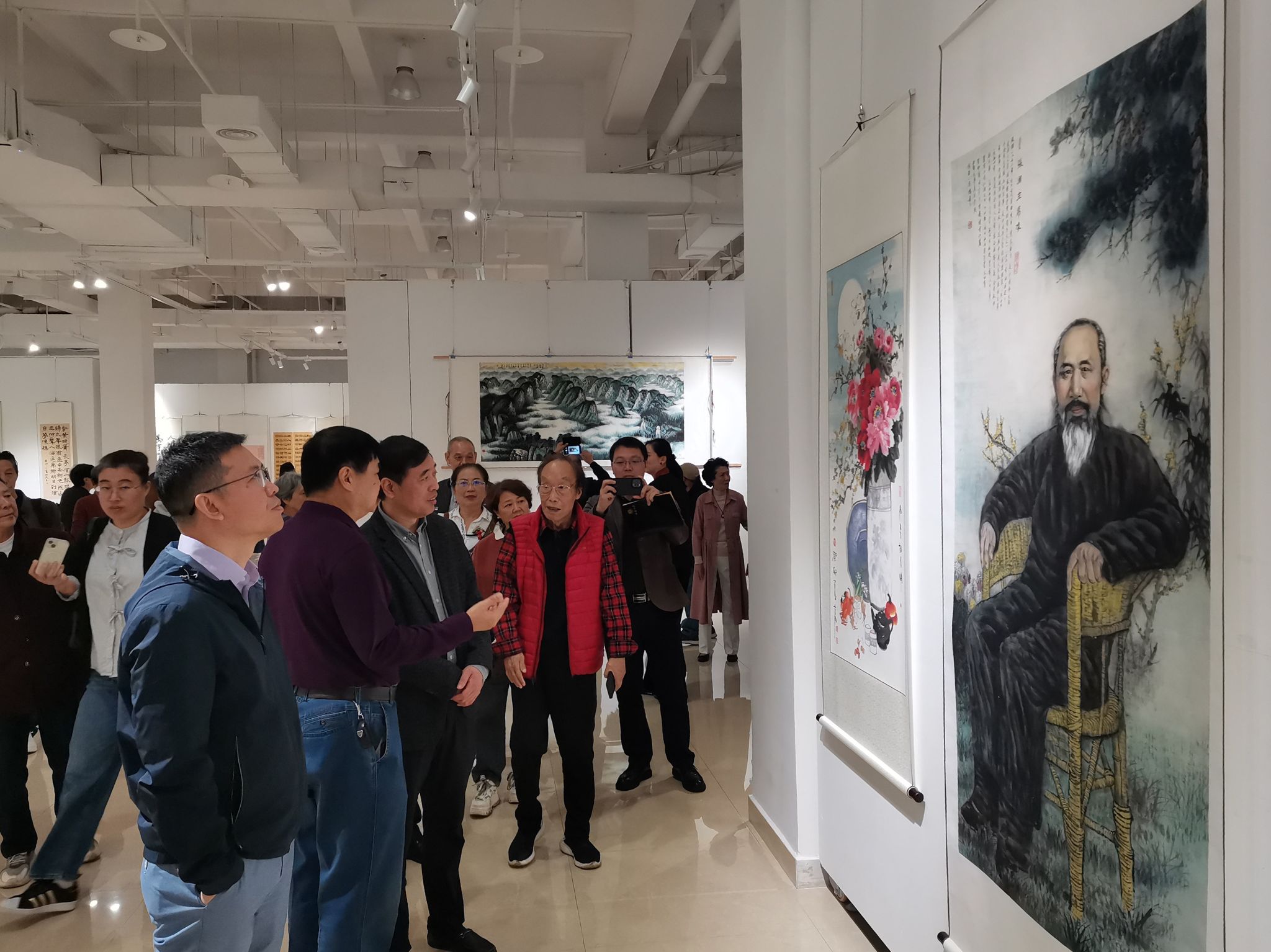 开幕式后,潘洵和大家一起步入展览大厅,观赏书法、绘画作品。大厅内少长咸集,群贤毕至,人人兴高采烈,如沐春风。此次联展共展出不同风格、不同类型、不同题材的书法、绘画作品220余幅,其中有气势磅礴的宏篇巨作,也有抒情写意的小件作品,这些作品倾注了老同志们对党的无限热爱,对祖国的一片深情,展示了老同志们活到老、学到老,紧跟时代步伐的老骥伏枥精神。
