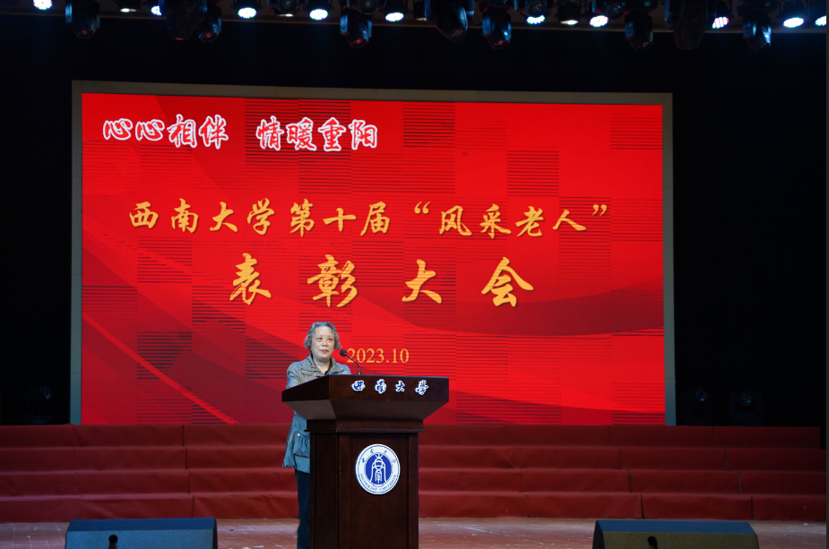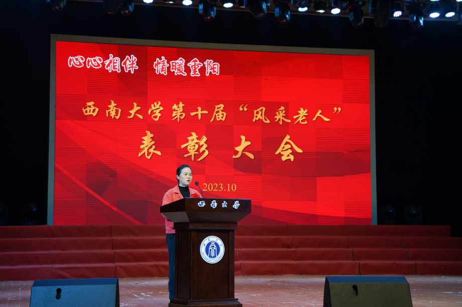 潘洵代表学校党委行政,向受到表彰的“风采老人”表示热烈的祝贺!向为学校建设发展付出辛勤汗水、做出突出贡献的离退休老同志们致以亲切的问候和美好的祝愿!他指出,当前,学校正朝着建设特色鲜明的世界一流大学目标努力迈进,正处于着力推进“双一流”建设、全面融入成渝地区双城经济圈建设、投身西部(重庆)科学城建设的战略机遇期。在抢抓机遇、攻坚克难的过程中,更需要持续推动学校离退休工作高质量内涵式发展,希望学校各级党组织要坚持党建引领,发挥老同志重要作用;相关管理服务部门要用心用情用力,做好老同志精准服务;广大老同志要弘扬优良传统,推动党的事业薪火相传。他强调,我们要以习近平总书记关于老干部工作的重要论述和对老龄工作的重要指示精神为指引,切实增强做好离退休工作的责任感和使命感,全面落实立德树人根本任务,以铸魂育人的实际行动,为培养担当民族复兴大任的时代新人谱写新的篇章,为建设特色鲜明的世界一流大学贡献磅礴力量。