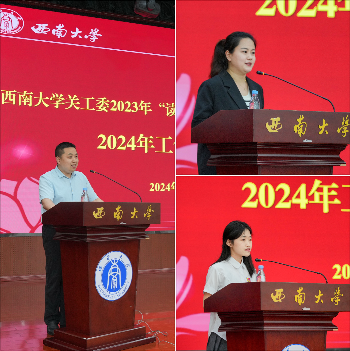 5月9日下午,学校关工委召开2023年“读懂中国”活动总结表彰暨2024年工作推进会,学校党委副书记潘洵、校关工委常务副主任宋乃庆出席会议。党政办公室、党委组织部、团委、人力资源部、学生工作处、离退休党委 离退休工作处等职能部门负责人,学院(部)关工委常务副主任、副主任、联络员,关工委秘书处成员、志愿者服务团队长,以及获奖师生代表100余人参会。会议由离退休工作处处长廖万洪主持。