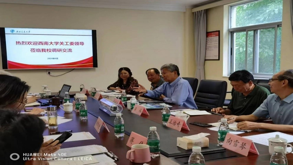 6月11日下午,宋乃庆一行首先来到西南交通大学,受到党委副书记、关工委主任杨爱华,关工委副主任、原副校长刘学信等领导热情接待,刘学信介绍了该校关工委总体概况、工作机制、运行模式、自身建设、“一院一品”等工作经验。杨爱华陪同参观考察并进行工作交流。