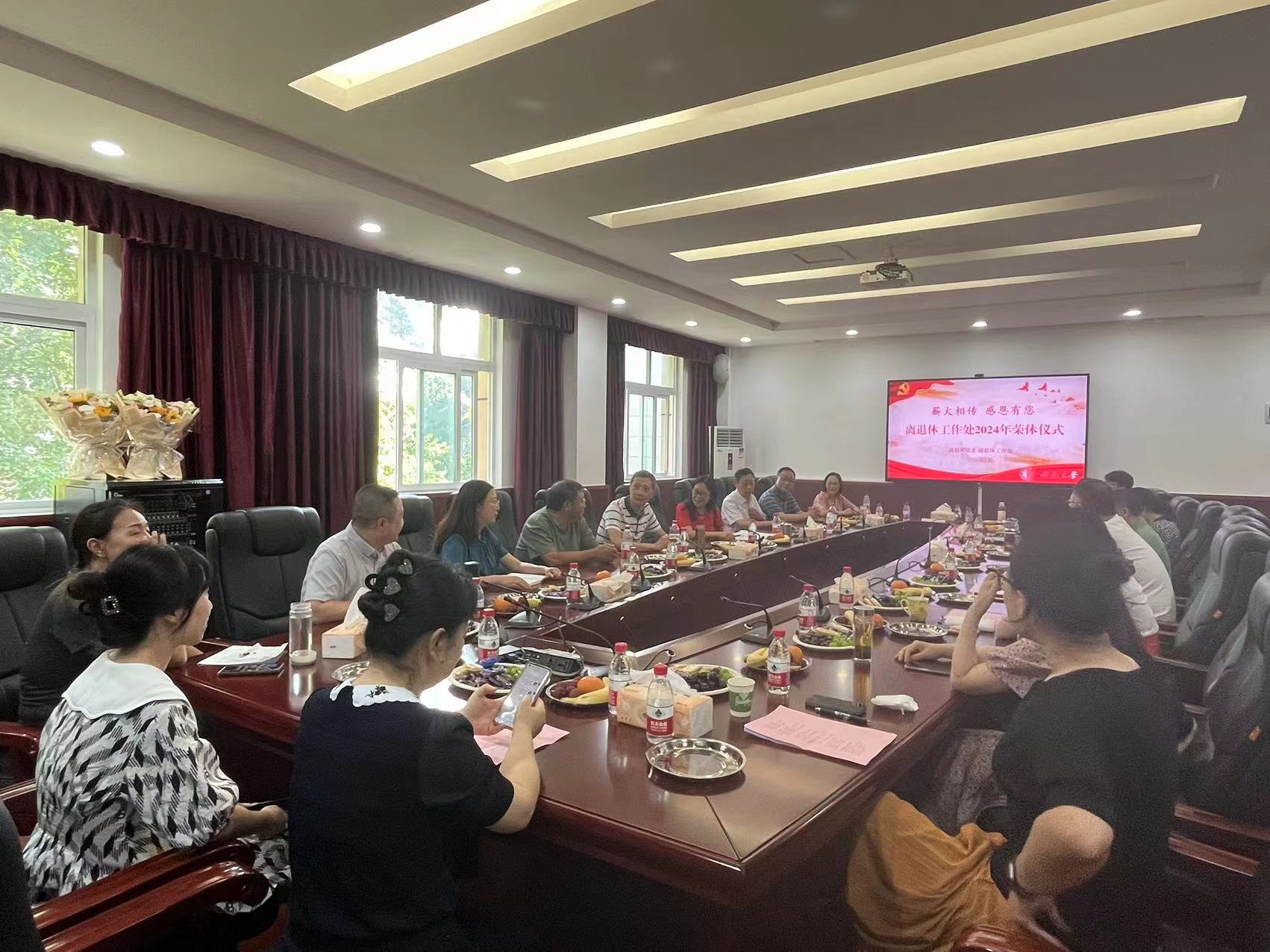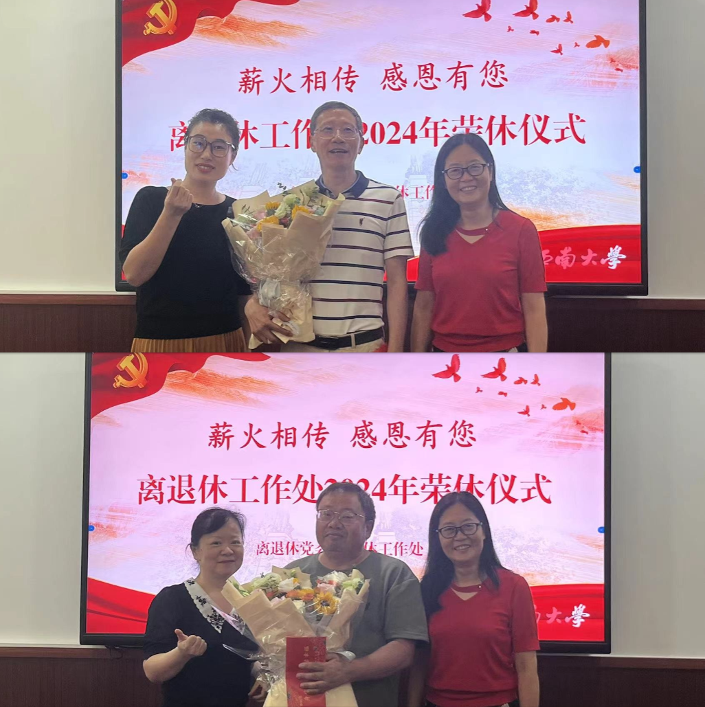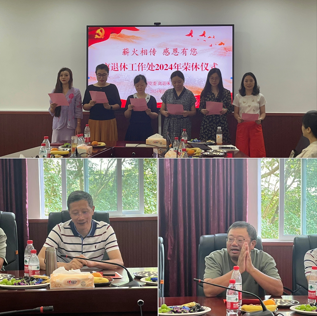 光阴荏苒,弦歌不辍。今年离退休党委、离退休工作处原处长李素伟、原党委副书记周厚彬、原退休科科长胡正丽3位老师荣誉退休,为表达对今年荣誉退休教职工的敬意与关爱,离退休党委、离退休工作处7月2日下午隆重举行主题为“薪火相传·感恩有您”的荣休仪式。李素伟、周厚彬及离退休党委、离退休工作处全体职工齐聚一堂,共同见证这值得纪念的日子。离退休党委书记李红主持仪式。