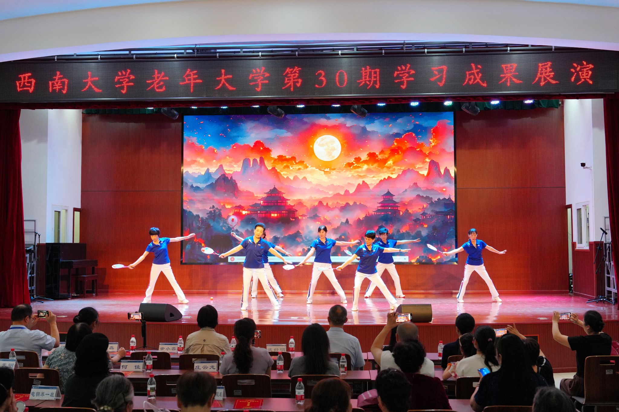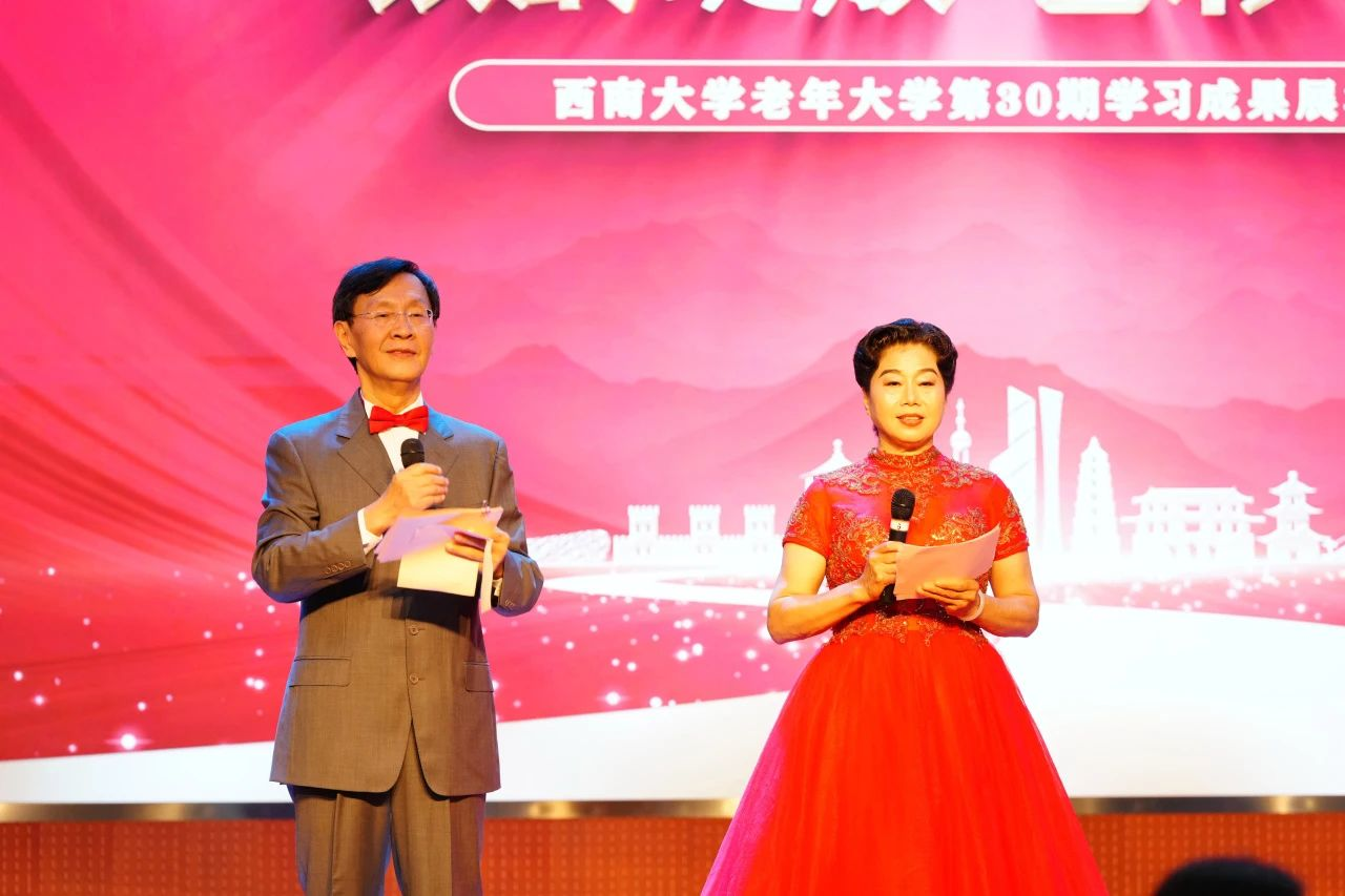 6月24日下午,bw必威西汉姆联官网老年大学"银龄绽放 艺彩飞扬"第三十期学习成果展演暨书画摄影展在教职工活动中心隆重举行。本次活动通过文艺汇演和书画摄影作品展两大板块,集中展示了老年大学学员们的学习成果,生动诠释了新时代西大老年人"老有所学、老有所乐、老有所为"的精神风貌。学校党委副书记武好明,北碚区老年大学常务副校长肖玉勤一行出席活动。