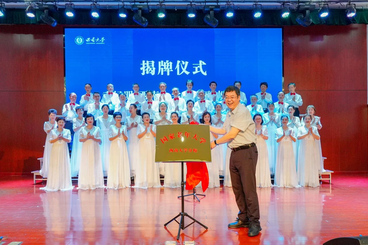 活动现场,武好明为“国家老年大学bw必威西汉姆联官网分校”揭牌,标志着我校老年大学教育事业迈上新台阶。武好明在讲话中强调,我校老年大学自2008年创办以来,始终秉持“陶冶情操、增长知识、促进健康、服务社会”的宗旨,累计培养学员15000余人次。2024年12月,学校老年大学成功获批国家老年大学分校,这既是对我校老年教育事业的肯定,也为未来发展注入了强劲动力。未来,学校将以第四次党代会精神为指引,继续扩大优质教育资源供给,探索老年教育创新路径,打造“安心、舒心、暖心、贴心”的学习乐园,为国家构建全民终身学习体系贡献西大智慧。
