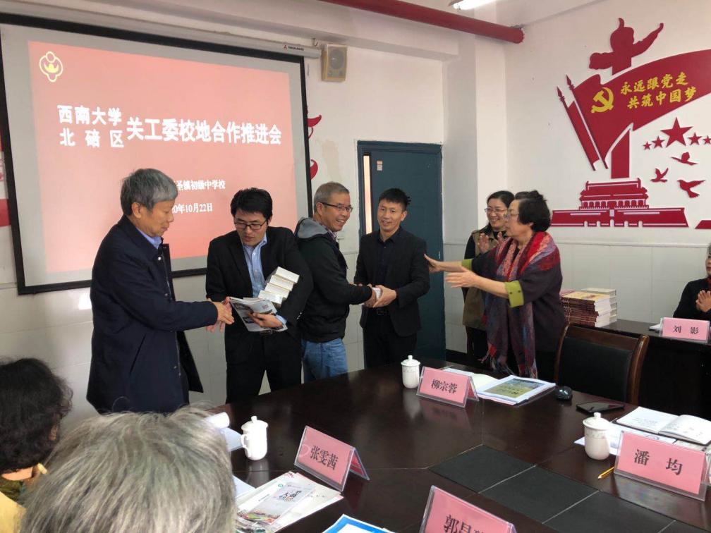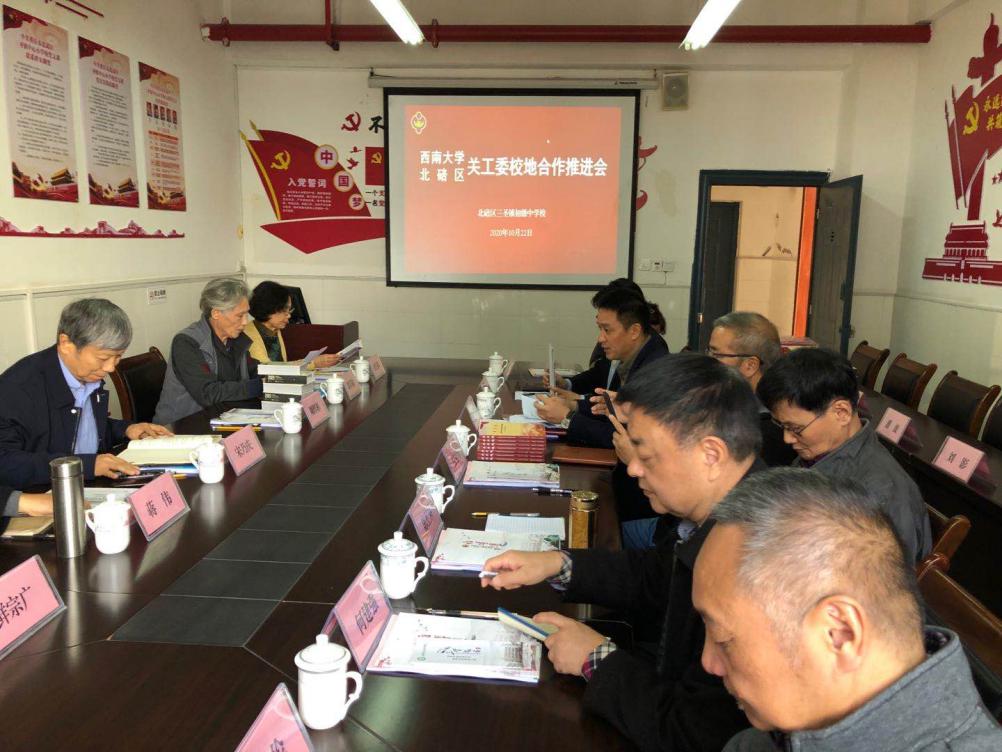 10月22日,bw必威西汉姆联官网关工委、重庆市北碚区关工委校地合作推进会在北碚区三圣小学举行,bw必威西汉姆联官网关工委常务副主任宋乃庆、北碚区关工委常务副主任张遇鸣等校区关工委领导、老同志及学校部分老师参加了会议。