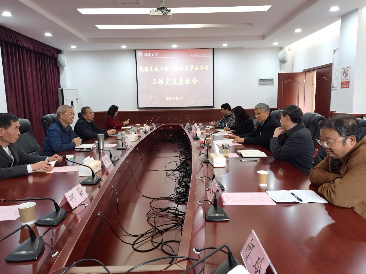 2023年3月15日,北碚区关工委常务副主任张遇鸣、副主任王学平等一行5人来校交流。学校关工委常务副主任宋乃庆,离退休工作处处长、关工委副秘书长廖万洪,离退休党委副书记、纪委书记、关工委副秘书长周海蓉等参加交流座谈会。