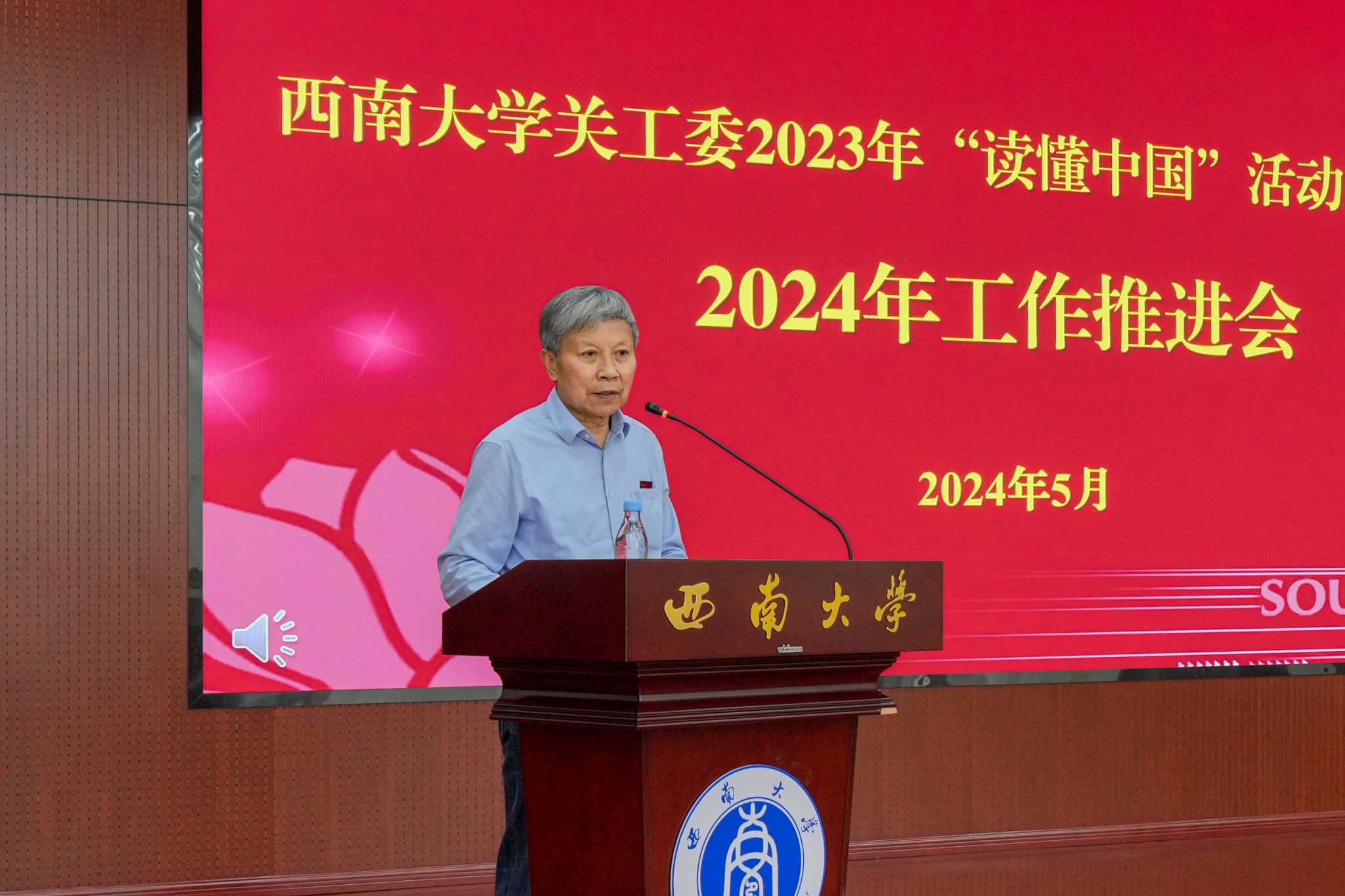 潘洵在讲话中,对学校关工委在2023年“读懂中国”活动中取得的成绩给予高度肯定,对获奖个人和单位表示热烈祝贺,向积极投身于关工委工作的老同志和关工委战线全体同志致以崇高的敬意和衷心的感谢。从“提高政治站位,深刻把握开展‘读懂中国’活动的重要意义”“坚持立德树人,将‘读懂中国’活动融入学校思想政治工作体系”“弘扬‘五老’精神,推动关工委工作高质量发展”三个方面对进一步做好关工委工作和开展好2024年“读懂中国”活动提出了希望和要求。他指出,今年是中华人民共和国成立75周年,学校各级关工委要紧扣“教育强国,奋斗有我”主题,加强组织领导,加大宣传力度,全力打造更多反映“五老”在助力教育强国、科技强国、人才强国建设中感人事迹的优秀作品。他强调,学校关工委要坚守立德树人初心,将“读懂中国”活动融入“时代新人铸魂工程”,纳入党团组织和学生工作部署,深度融入学校思想政治工作体系。他希望,关工委工作要以习近平总书记对关心下一代工作的重要指示精神为指引,切实增强责任感和使命感,不断提升关工委工作的时代感和实效性,推动关工委工作高质量发展。