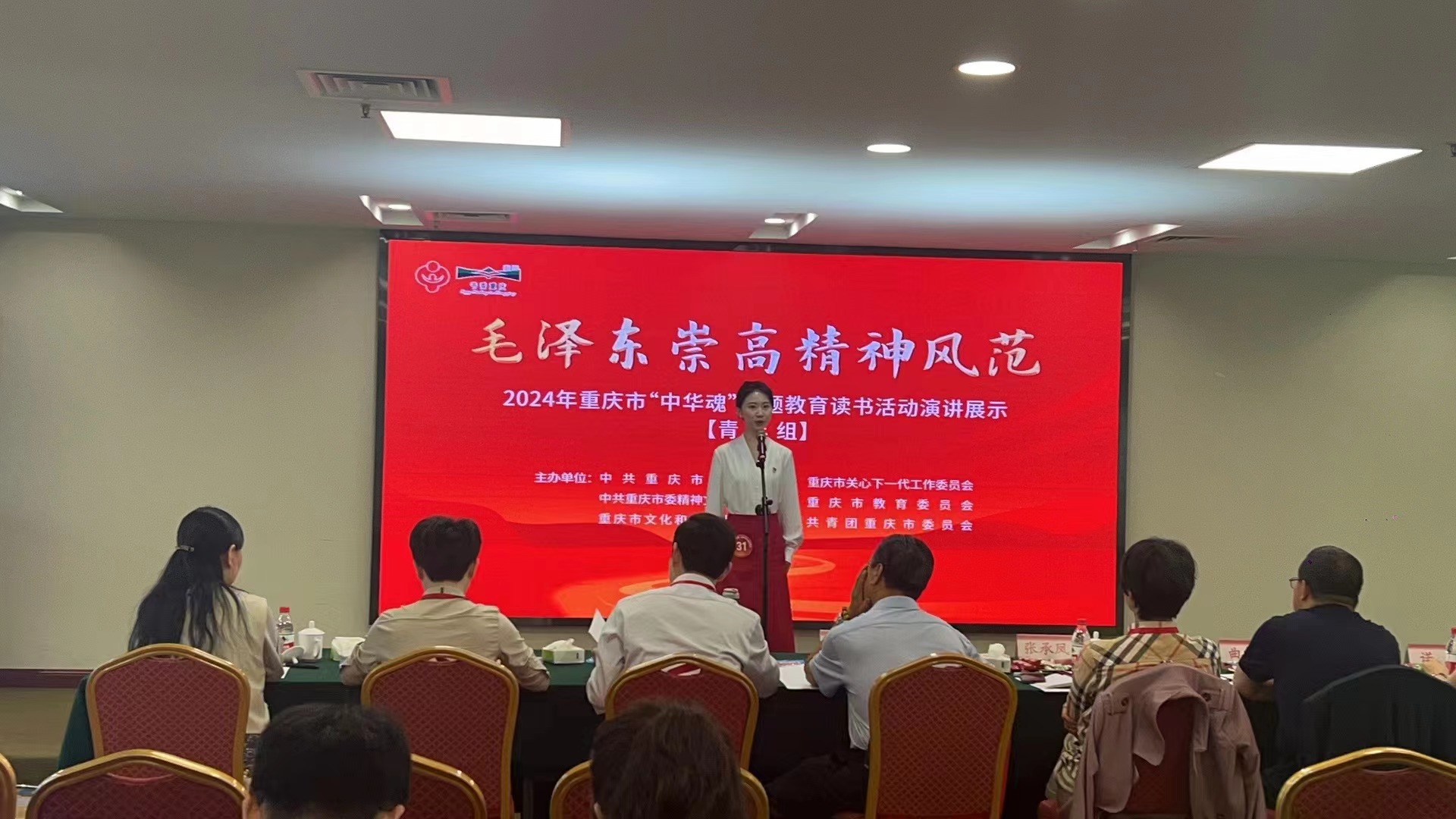此次“中华魂”《毛泽东崇高精神风范》主题教育读书活动中,全市38所高校共推荐上报761篇征文、58名演讲选手参加重庆市教委组织的征文、演讲比赛。经过组委会组织专家认真评选,共评选出演讲比赛特等奖6名、一等奖11名、二等奖17名、三等奖23名;征文比赛特等奖38名、一等奖114名,二等奖228名、三等奖343名,优秀辅导员568名,优秀组织单位16个。学校获“特等”和“一等”等高级别奖项的人数和占比均位居全市高校首位。其中,方正政、陈科竹和嘎玛顿珠三位选手被推荐代表市教委参加重庆市关工委“中华魂”青年组的演讲和征文比赛。