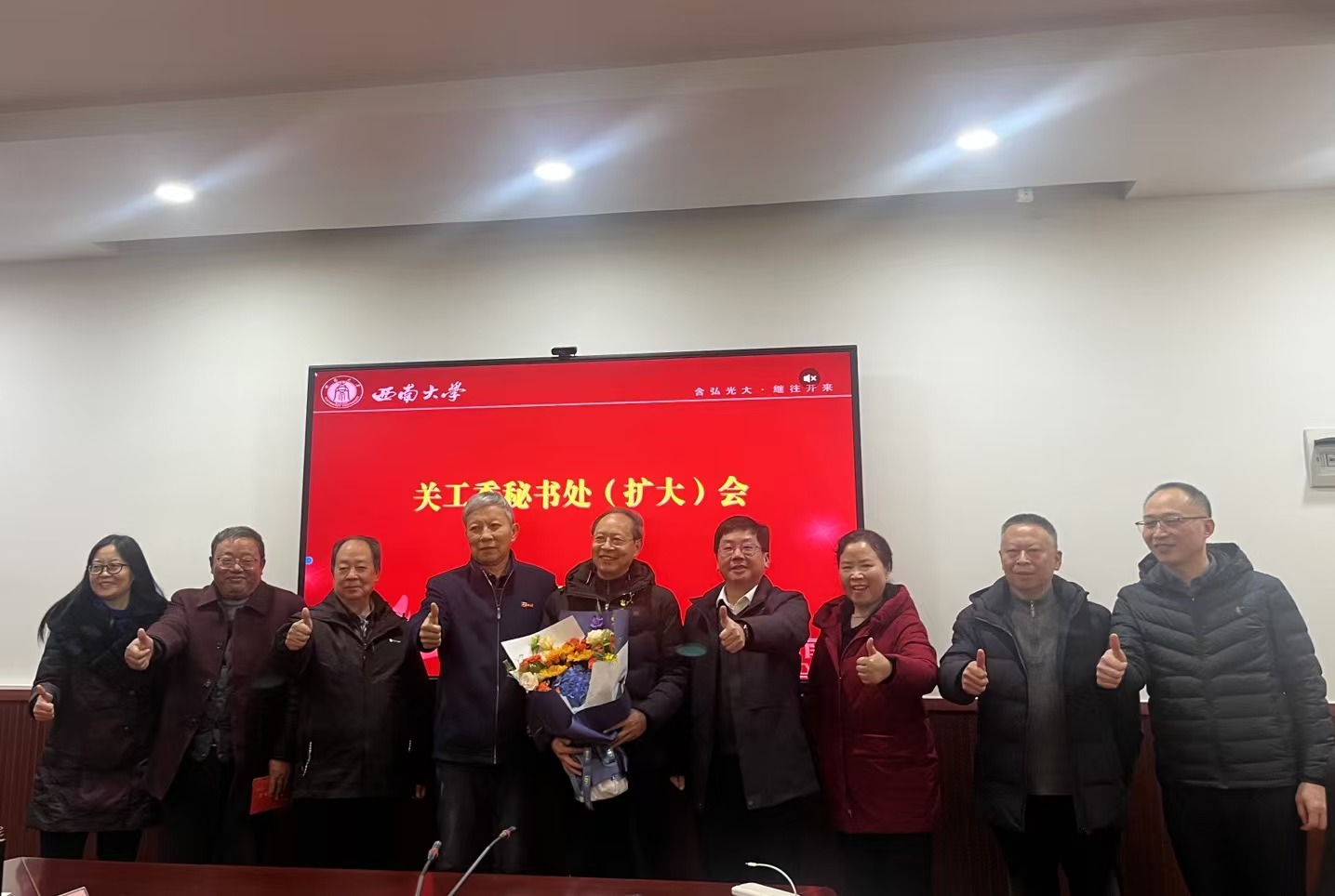 宋乃庆在讲话中强调发挥“西大红”五老服务团、“西小晖”学生服务团作用是当前乃至今后的一项重点工作,要密切关注师生需求与反馈,充分发挥 “五老” 优势与学生主体作用,实现双向奔赴、老少共进,以扎实工作为学校人才培养、校园文化建设添砖加瓦,铸就坚实育人堡垒。