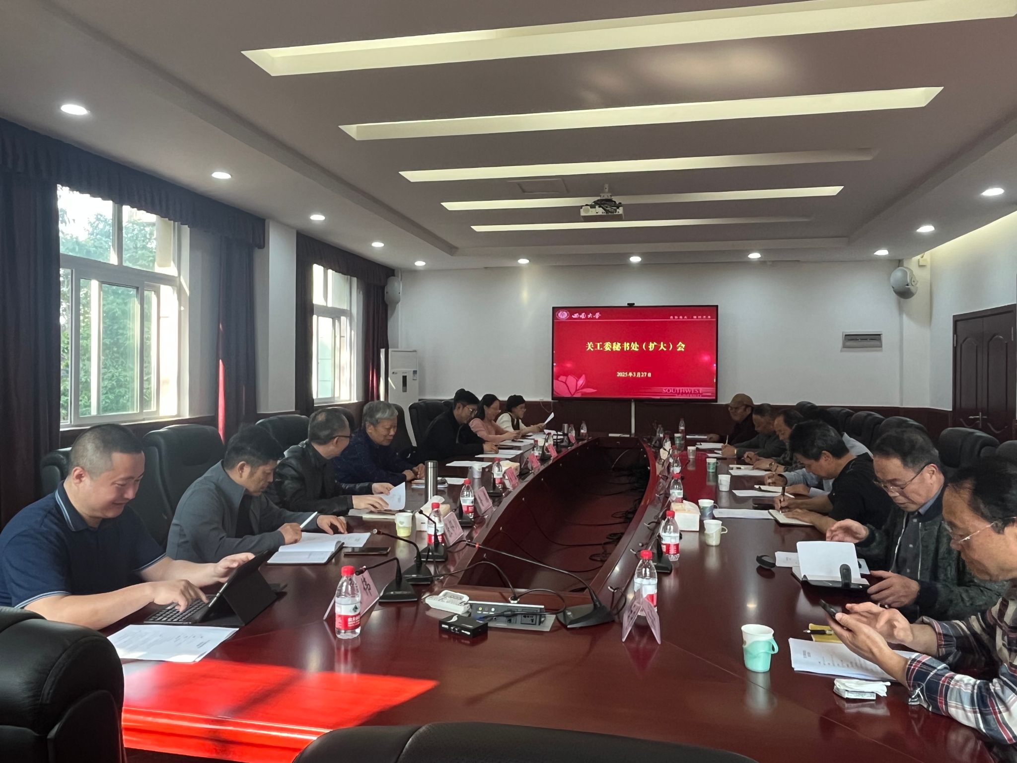 3月27日上午,学校在桃花山离退休教职工活动中心307会议室召开关工委秘书处(扩大)会。团委、党委教师工作部、学生工作部等秘书处成员单位相关负责人、秘书处全体成员以及“西大红”五老服务团各部部长参加会议。会议由离退休工作处处长鲁森主持,关工委常务副主任宋乃庆出席并讲话。