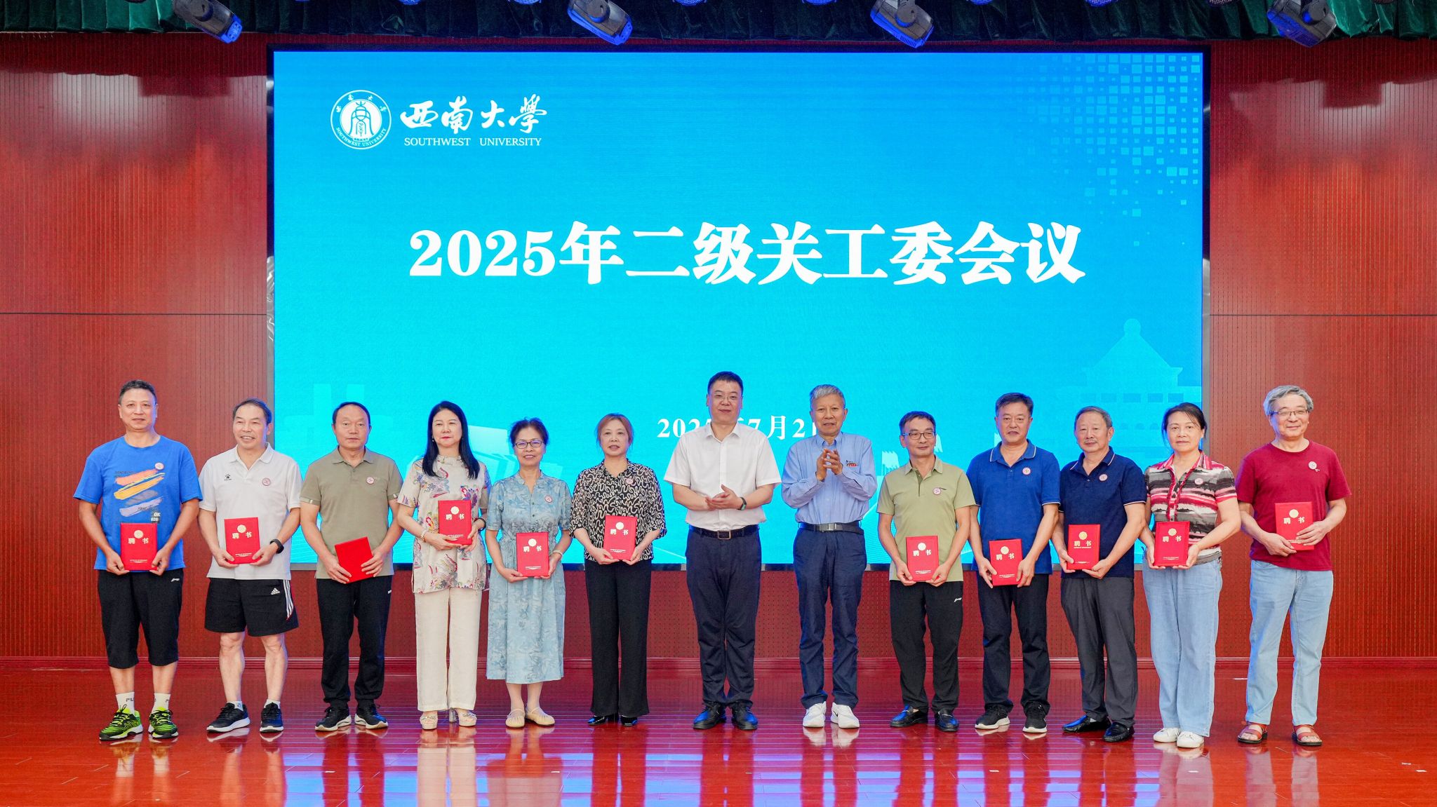 7月2日,学校2025年二级关工委会议在桃花山离退休教职工活动中心206报告厅召开。学校党委副书记、关工委副主任、秘书长武好明出席会议,关工委常务副主任宋乃庆,校关工委秘书处全体成员、成员单位负责人,“西大红”五老服务团各部(室)负责人及各二级关工委负责同志共计60余人参加会议。会议由离退休工作处处长、关工委副秘书长鲁森主持。