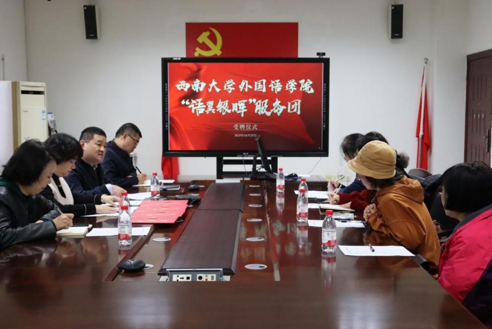 为深入贯彻落实教育部、重庆市教委及学校关工委关于基层“五好”关工委建设的文件精神,充分发挥退休老教职工在关心下一代工作中的独特作用,外国语学院组织成立“语翼银晖”服务团,并于10月29日举行受聘仪式。学院领导及“语翼银晖”服务团成员出席本次活动。活动由学院党委副书记、纪委书记梅胜利主持。
